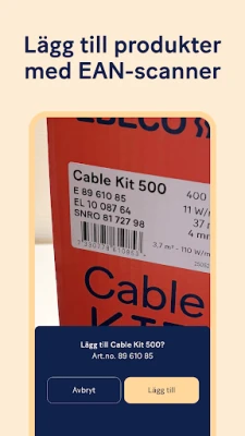 Garantera är designad för maximal effektivitet på fältet. Med den integrerade EAN-scannern kan du enkelt registrera material genom att direkt skanna produktens streckkod med din mobilkamera, vilket eliminerar manuell inmatning och risken för fel. Att logga mätvärden har aldrig varit smidigare, tack vare ett intuitivt gränssnitt som säkerställer precision. Behöver du snabbt välja rätt komponenter för en installation? Den inbyggda artikelväljaren hjälper dig att beräkna och specificera produkterna direkt i appen, vilket sparar tid och garanterar att du alltid har rätt material på plats.