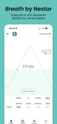 Paced Breathing, omnämnd i James Nestors bok "Andas", använder visuella, ljud- och haptiska signaler för att vägleda din andningspraktik. Perfekt för meditation, lungstärkning eller avkoppling. Upptäck varför tusentals använder Paced Breathing dagligen.