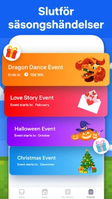 Från den intuitiva färgläggningsmekaniken, där varje siffra guidar dig till perfektion, till en oändlig ström av dagliga konstverk – Pixel Art ser till att inspirationen aldrig tryter. Utforska allt från intrikata mandalor till charmiga djur, skräddarsydda för varje smak och detaljnivå. Fördjupa dig i den helt nya Blomsterträdgården, där du bygger din egen frodiga oas och belönas för din kreativitet. Ge liv åt dina egna fotografier genom att omvandla dem till pixlade mästerverk redo för färgläggning, eller upplev spänningen med våra säsongsevenemang, där unika temaillustrationer firar årets höjdpunkter och berikar din samling.