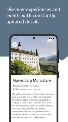Upptäck Sydtyrolens dolda pärlor och välkända sevärdheter med din ultimata resekompanjon. Reseguiden för Sydtyrolen är din personliga expert som hjälper dig att utforska regionen som en lokalbo. Dela din plats för att omedelbart hitta evenemang, aktiviteter och attraktioner i din närhet, noggrant anpassade efter dina intressen. Låt dig inspireras av säsongsanpassade rekommendationer från lokala experter, vilket garanterar att du får ut det mesta av ditt besök, oavsett tid på året.