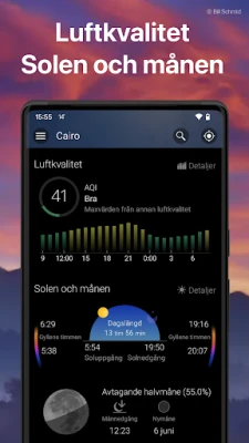 Weawow levererar inte bara skönhet, utan även oöverträffad precision och anpassningsbarhet. Välj bland ett brett spektrum av erkända väderleverantörer som NWS (NOAA), DWD, Meteo France, Dark Sky och många fler för att få den mest pålitliga informationen. Utforska detaljerade data om temperatur, nederbörd, vindhastighet, lufttryck, UV-index, luftfuktighet, daggpunkt och solstrålning. Allt detta presenteras helt utan irriterande annonser, vilket garanterar en ostörd upplevelse. Skräddarsy appens layout efter dina önskemål, arrangera information som du vill se den, och välj bland olika väderikoner och teman som mörkt eller ljust läge.