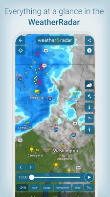 Med **Weather & Radar** får du enastående insikt i vädret, oavsett var du befinner dig i världen. Denna app håller dig ständigt informerad om rådande förhållanden, från strålande solsken till oväntade regnskurar, åska eller snöfall. Få exakta, timvisa och dagliga prognoser direkt till din position, kompletterat med en detaljerad 14-dagarsöversikt för att planera framåt med tillförsikt. Upplev precision kring temperatur, nederbördssannolikhet, vindstyrka, soltimmar samt tider för soluppgång och solnedgång.