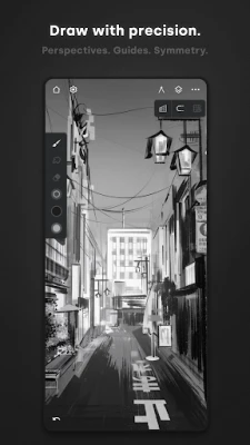 Infinite Painter är utformad för att optimera ditt arbetsflöde och maximera din kreativitet. Njut av mer duk och mindre distraktion tack vare en ren, personlig arbetsyta där du snabbt kan fästa verktyg och åtgärder för omedelbar åtkomst. Navigera smidigt med intuitiva gester för att rotera, vända och gruppera lager, eller dra fram färghjulet med två fingrar direkt på duken. Skapa mästerverk med precision med hjälp av avancerade guider för komplex symmetri, dynamiska perspektiv – inklusive 3D-stadsvyer och isometriska vinklar – samt smart formigenkänning som förbättrar dina linjer. Med blixtsnabb lagring och en detaljerad projektöversikt kan du alltid backa i tiden och experimentera fritt.