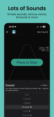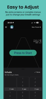 Paced Breathing utmärker sig med sin omfattande anpassningsbarhet. Du kan exakt ställa in varaktigheten för inandning, hålla andan, utandning och pauser efter varje steg, vilket ger dig full kontroll över din praktik. För en ännu djupare insikt erbjuder Paced Breathing (i PB+ versionen) avancerad hjärtövervakning med data för puls, HRV och koherens, vilket ger dig konkreta bevis på din framgång. Appen inkluderar även ett smart "ramp-läge" för att gradvis justera andningstiderna, samt erbjuder flexibla vägledningar via visuella signaler, lugnande ljud och diskreta vibrationer. Med funktioner som påminnelser och bakgrundsuppspelning (PB+), blir det enklare än någonsin att integrera andningsövningar i din dagliga rutin. Håll koll på dina framsteg med detaljerad sessionspårning, serier och mål (PB+).